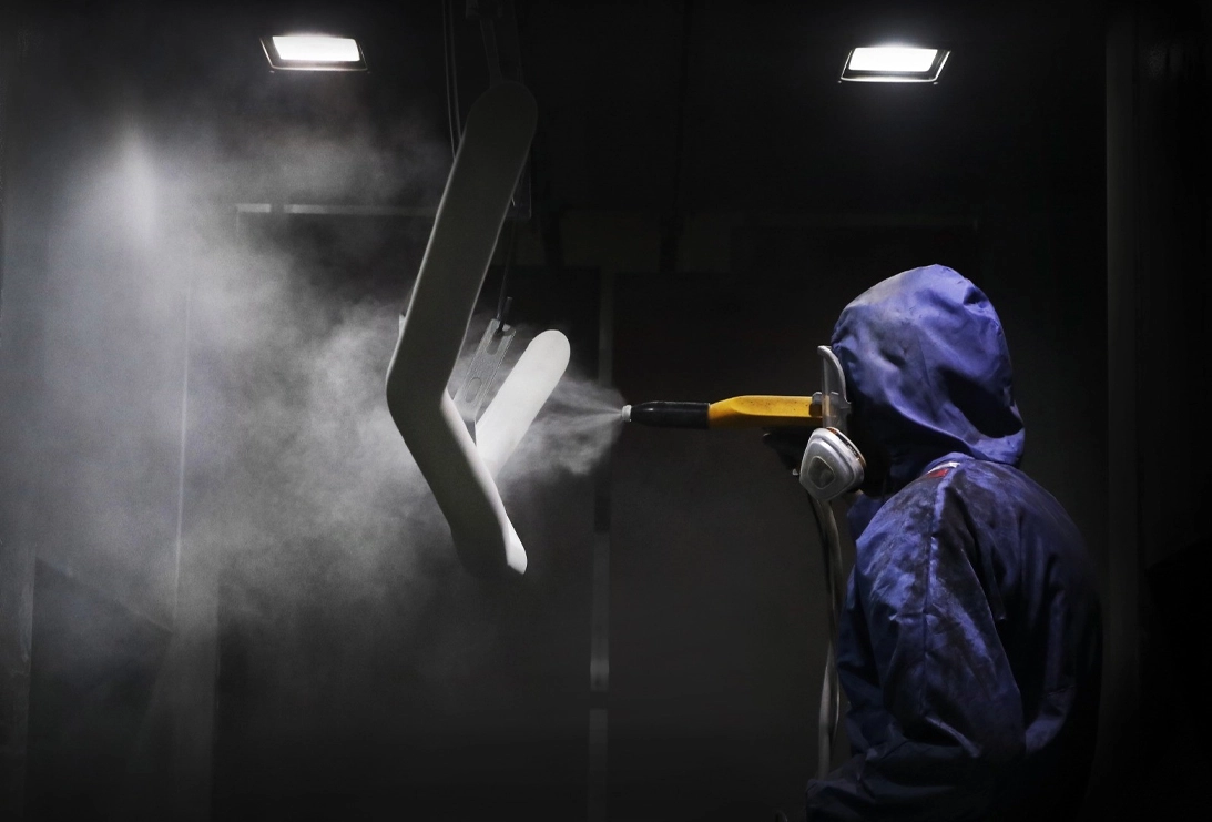 Nasze miejsce, gdzie stalowe elementy kryjemy farbą proszkową, a następnie utwardzamy je w wysokiej temperaturze. To gwarancja równomiernej i przede wszystkim trwałej powłoki natryskowej na naszych produktach.